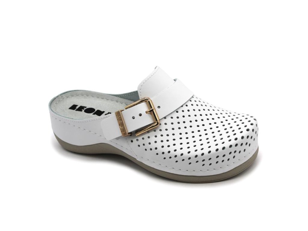 Dámské kožené pantofle s uzavřenou špičkou LEON 940 jsou pohodlnou volbou pro každodenní nošení. Svršek z pravé kůže je doplněn perforací, která pomáhá lepšímu odvětrávání a zvyšuje komfort při dlouhodobém nošení. Gelová stélka tlumí došlap a přispívá k pohodlí při chůzi. Model je vybaven syntetickou protiskluzovou podešví. Podpatek je vysoký 5 cm.