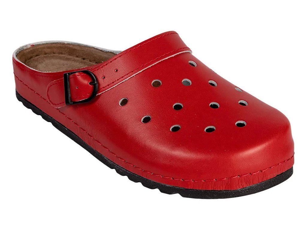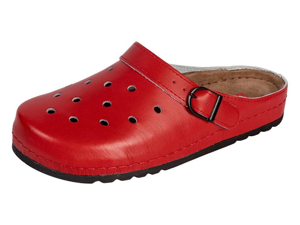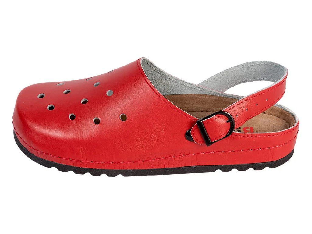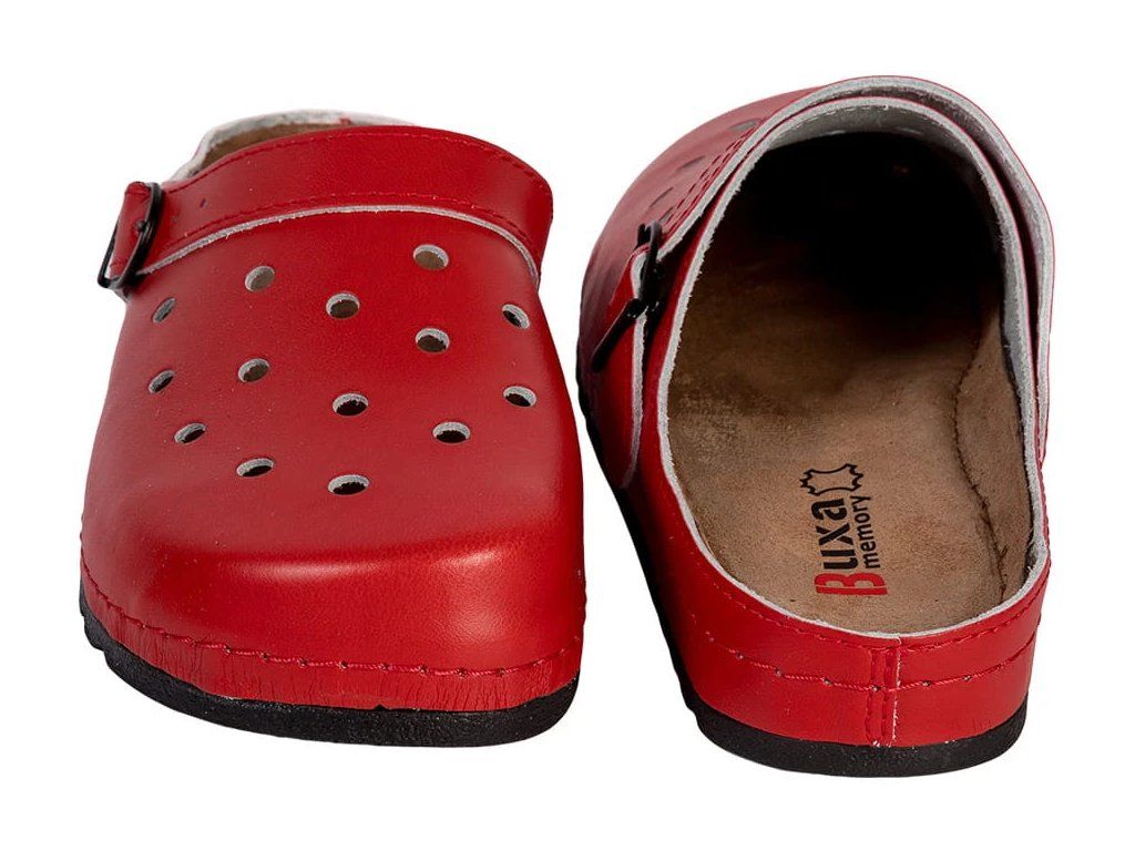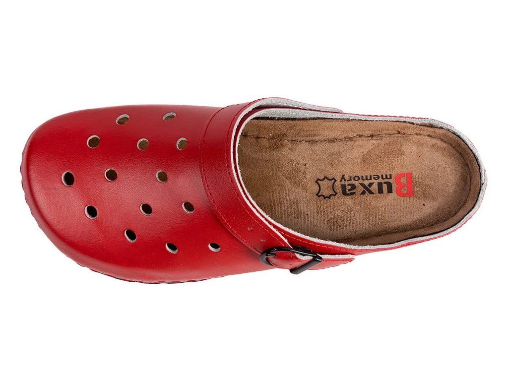 Dámská zdravotní obuv Buxa BZ131 v červené barvě je navržena pro pohodlné celodenní nošení. Oproti běžným syntetickým EVA modelům nabízí kožený svršek a koženou stélku, které jsou příjemnější na nošení, lépe pracují s vlhkostí a působí komfortněji při delším používání.