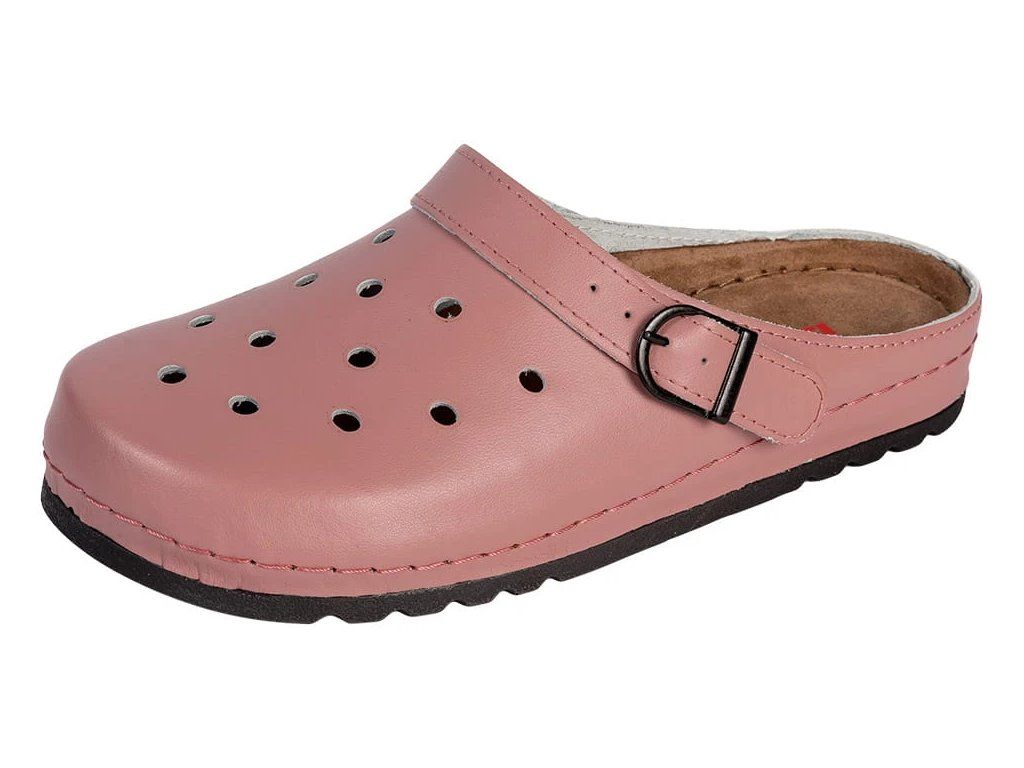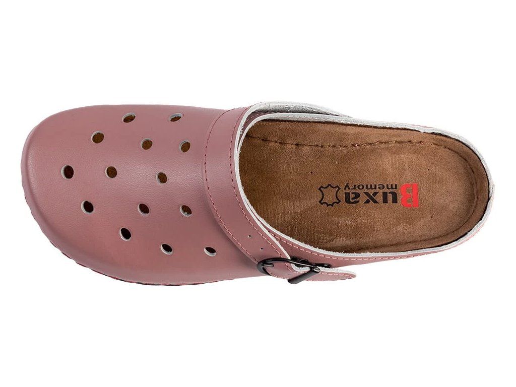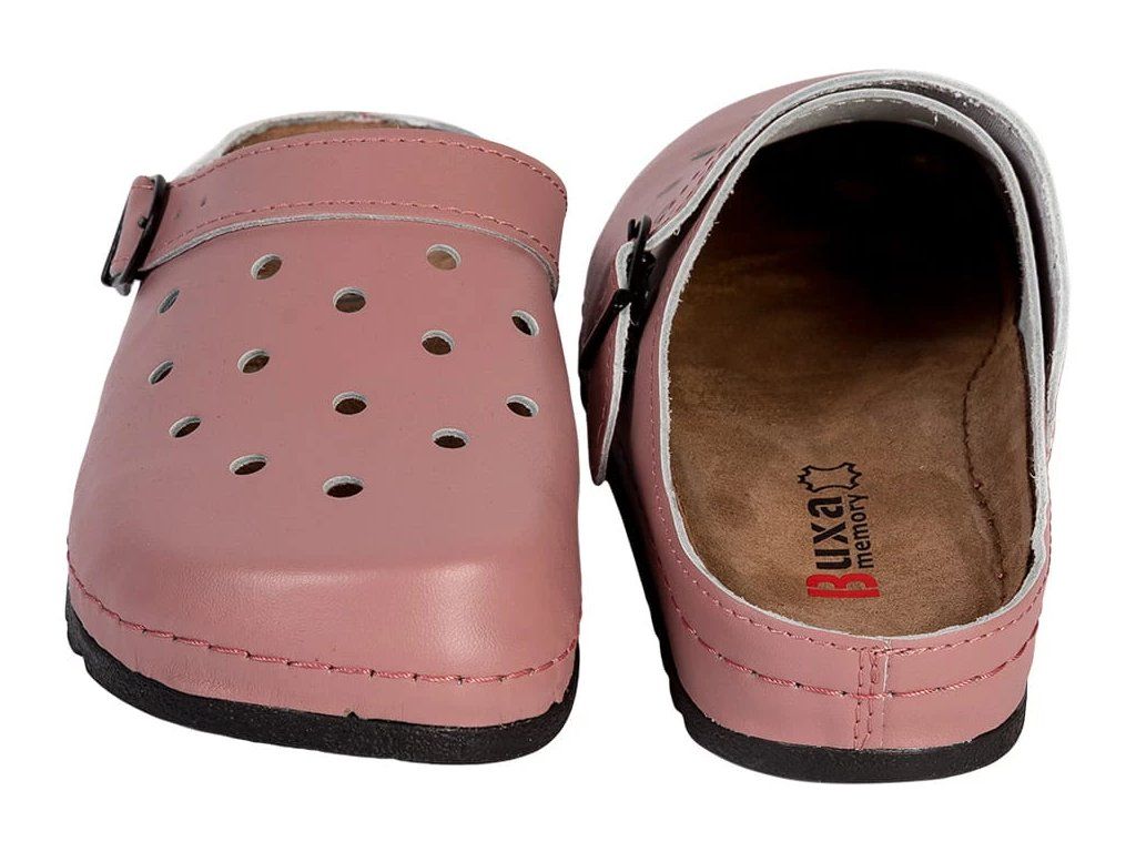 Dámská zdravotní obuv Buxa BZ131 v růžové barvě je navržena pro pohodlné celodenní nošení. Oproti běžným syntetickým EVA modelům nabízí kožený svršek a koženou stélku, které jsou příjemnější na nošení, lépe pracují s vlhkostí a působí komfortněji při delším používání.