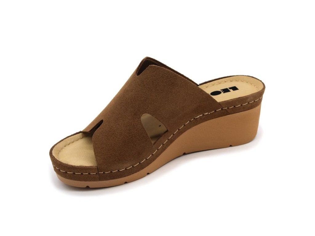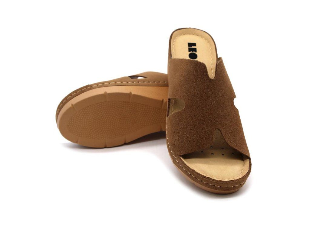 Leon 1111 Dámské kožené pantofle - hnědé