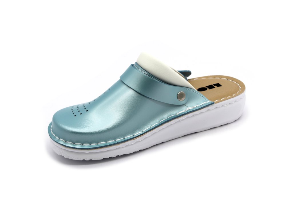 Leon 300 dámská zdravotní obuv v elegantní mátové barvě působí jemně a zároveň poskytuje vysoký komfort. Svrchní část je vyrobena z kvalitní přírodní kůže s decentní perforací pro lepší cirkulaci vzduchu.