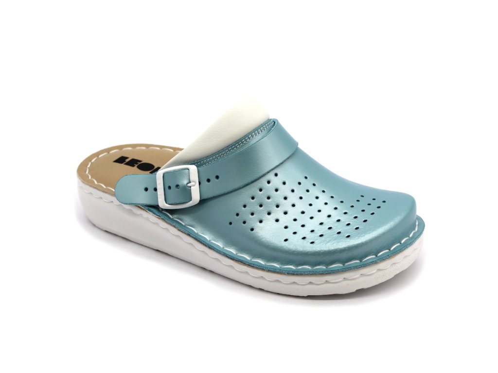 Leon 300 dámská zdravotní obuv v elegantní mátové barvě působí jemně a zároveň poskytuje vysoký komfort. Svrchní část je vyrobena z kvalitní přírodní kůže s decentní perforací pro lepší cirkulaci vzduchu.