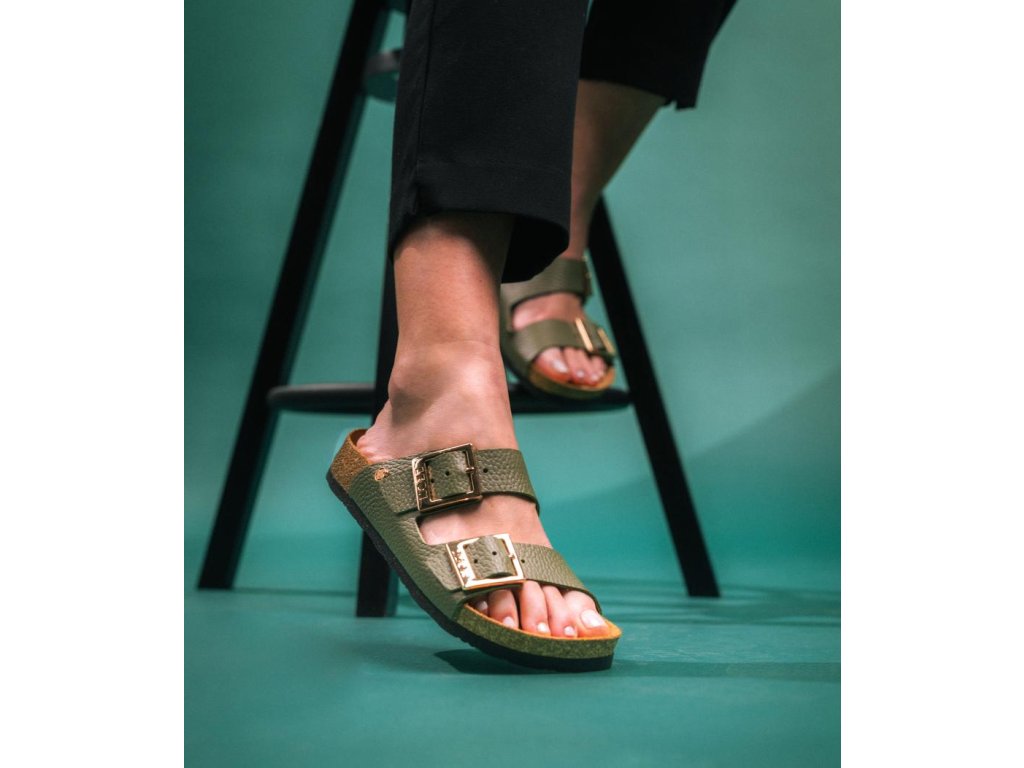 Dámské korkové pantofle LEON 4014 jsou pohodlnou obuví se svrškem z kvalitní přírodní kůže. Přezky v oblasti nártu umožňují individuální přizpůsobení pomocí kovových spon. Komfort při nošení zajišťuje anatomicky tvarovaná stélka s měkkou semišovou nášlapnou vrstvou. Podešev je vyrobena z odolného syntetického materiálu.