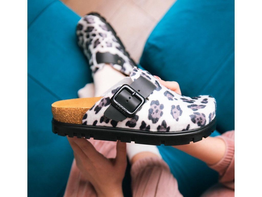 Dámské kožené pantofle LEON 6003 kombinují moderní design s maximálním pohodlím. Jsou vyrobeny z pravé kůže, zajišťují prodyšnost a komfort při nošení. Pantofle mají nastavitelnou přezku, která umožňuje upravit šířku pomocí kovové spony. Anatomicky tvarovaná korková stélka s měkkou semišovou částí poskytuje optimální podporu chodidlům. Pantofle jsou ideální pro každodenní nošení doma i venku, včetně dlouhých procházek.