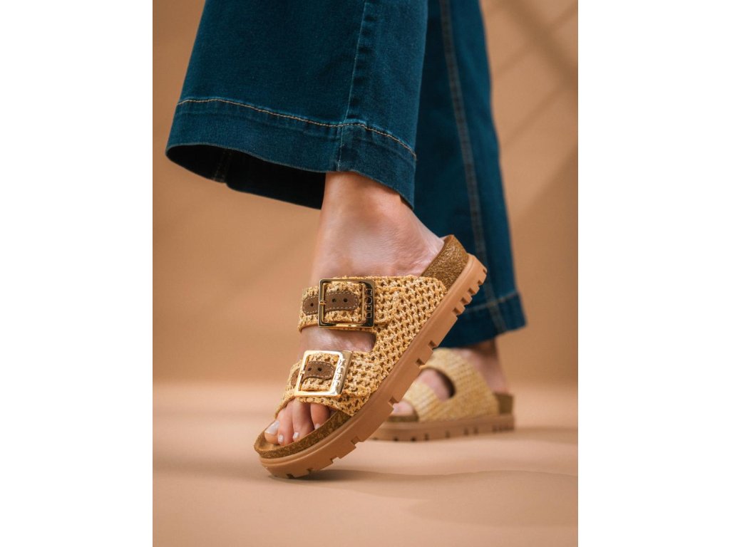 Dámské kožené pantofle LEON 6017 spojují moderní vzhled a pohodlí při každodenním nošení. Nastavitelné přezky umožňují přizpůsobit svršek tvaru nohy. O komfort se stará anatomicky tvarovaná korková stélka s měkkou semišovou nášlapnou vrstvou a pohodlná syntetická podešev, díky čemuž jsou pantofle vhodné do interiéru i na venkovní použití, například na běžné nošení nebo lehké letní procházky.