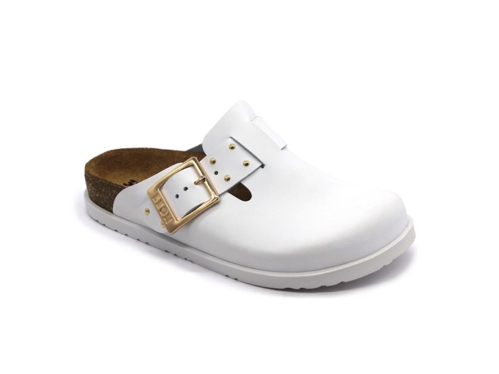 LEON 7002 Dámské kožené korkové pantofle – bílé