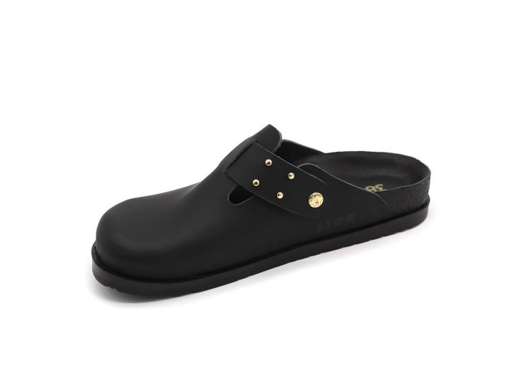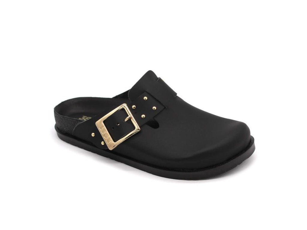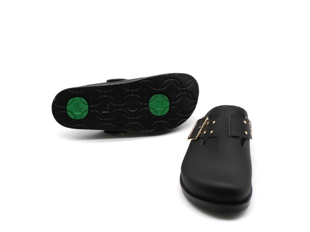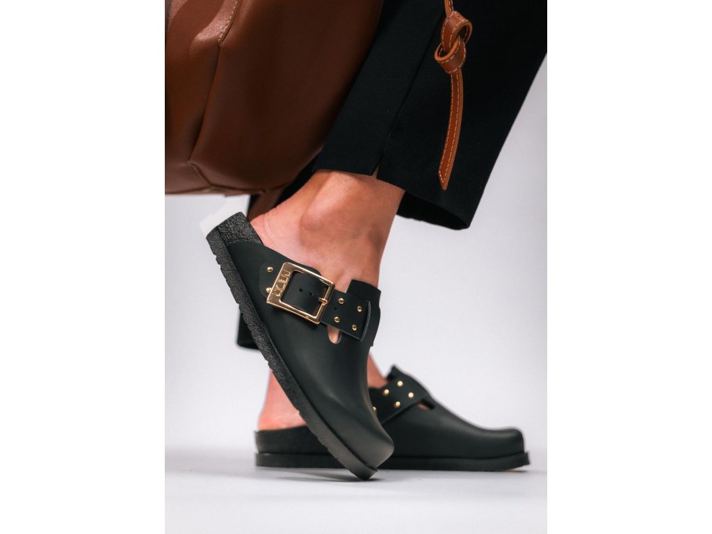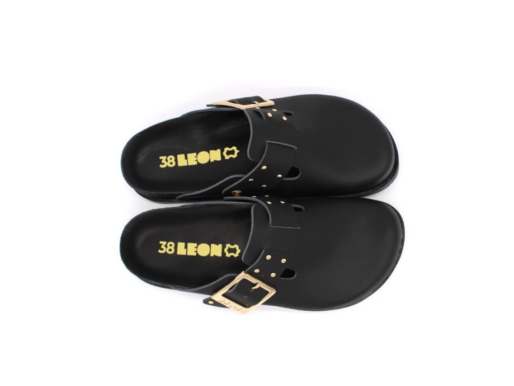 LEON 7002 Dámské kožené korkové pantofle – černé