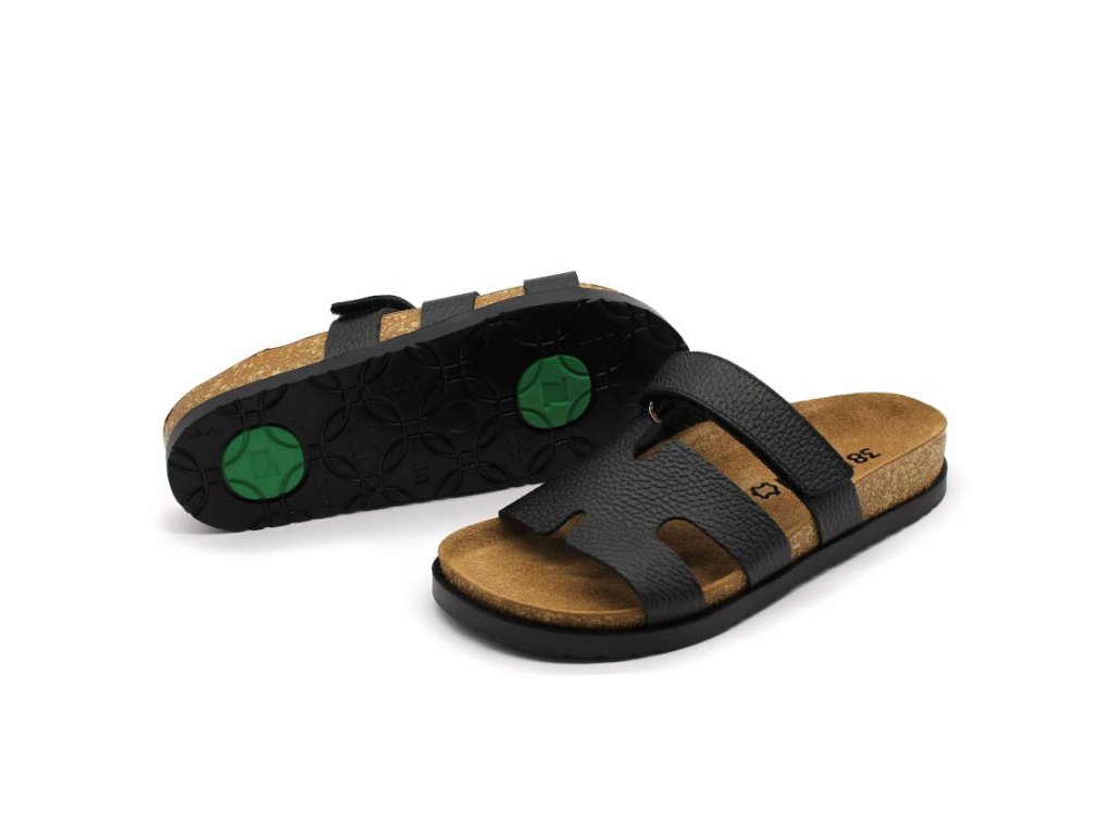 Anatomicky tvarovaná korková stélka podporuje přirozené postavení chodidla. Měkká semišová nášlapná vrstva zvyšuje pohodlí při došlapu a spodní vrstva z pěnového materiálu pomáhá tlumit nárazy při chůzi. Díky tomu jsou pantofle vhodné nejen na doma, ale i na běžné venkovní nošení a delší procházky.