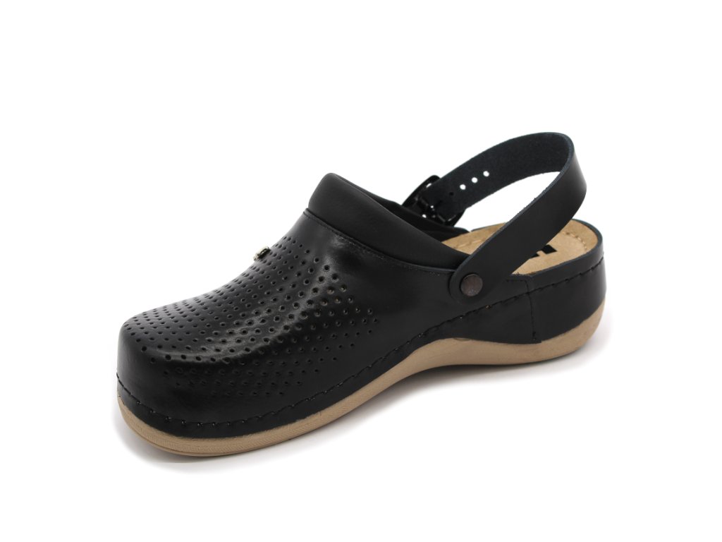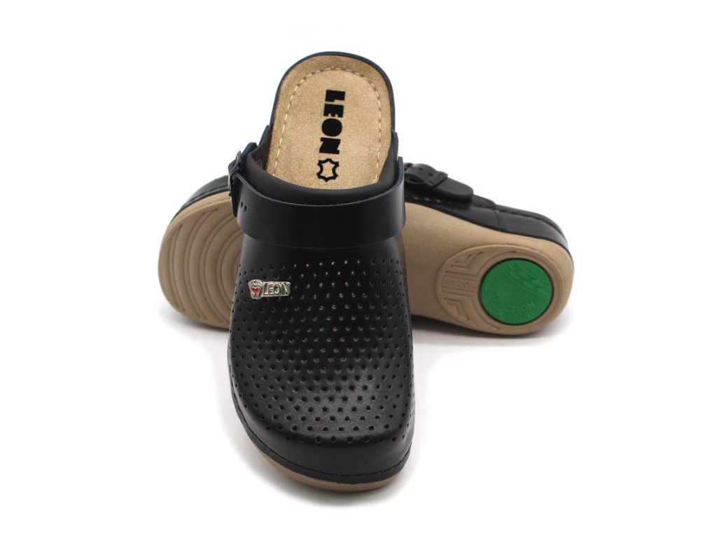 Dámská kožená obuv LEON 991 je navržena pro maximální pohodlí při celodenním nošení. Protiskluzová podešev zajišťuje bezpečný krok na různých površích. Na boční straně se nachází kovová nastavitelná přezka, díky které si snadno upravíte šířku obuvi podle své potřeby. Nastavitelný pásek lze posunout až k patě, takže obuv můžete nosit také jako sandály.