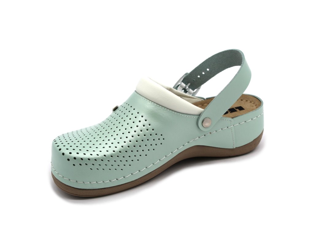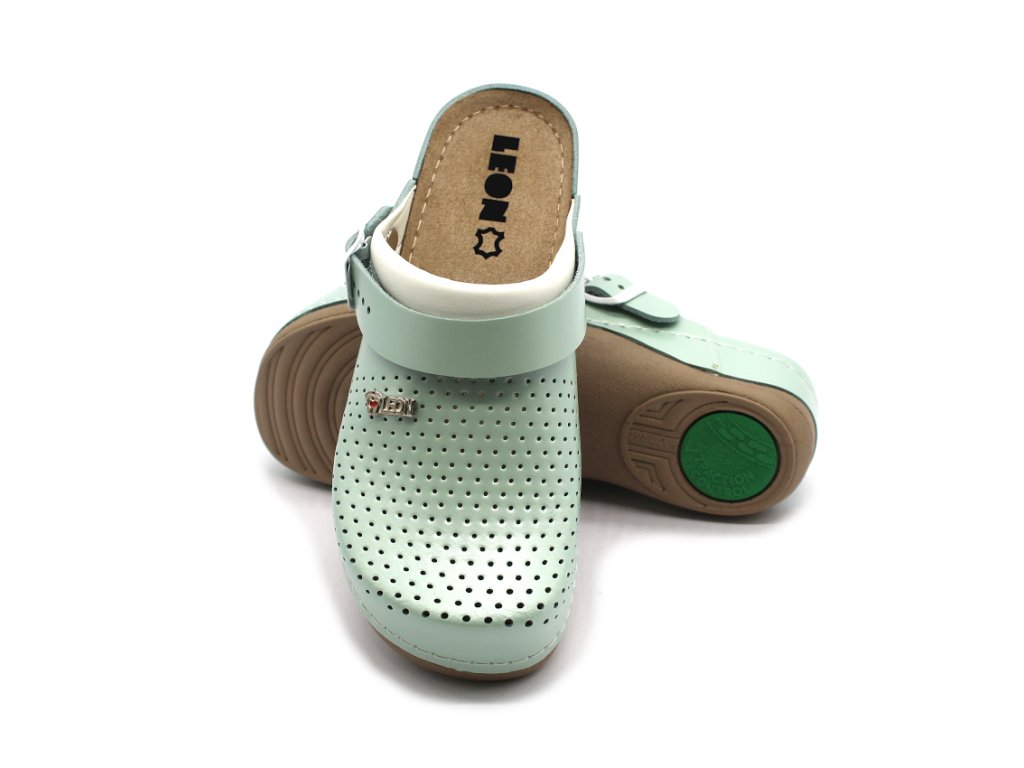Dámská kožená obuv LEON 991 je navržena pro maximální pohodlí při celodenním nošení. Protiskluzová podešev zajišťuje bezpečný krok na různých površích. Na boční straně se nachází kovová nastavitelná přezka, díky které si snadno upravíte šířku obuvi podle své potřeby. Nastavitelný pásek lze posunout až k patě, takže obuv můžete nosit také jako sandály.