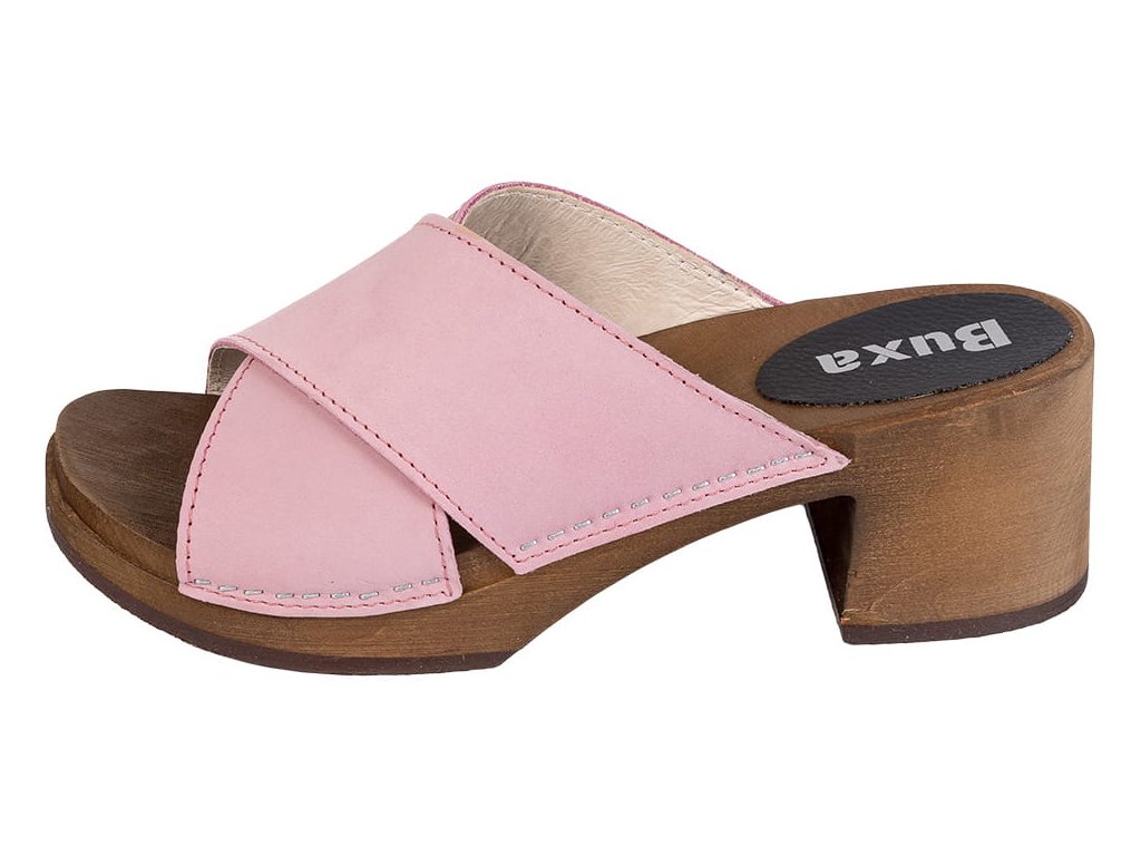 Módní dřeváky s koženým svrškem OS86C na širokém podpatku nejen skvěle doplní váš outfit, ale zároveň přispívají ke zdraví vašich nohou a správnému držení těla při chůzi i stání. Podešev ze světlého lipového dřeva je opatřena protiskluzovou gumovou vrstvou, která zajišťuje tichý krok a bezpečný došlap.