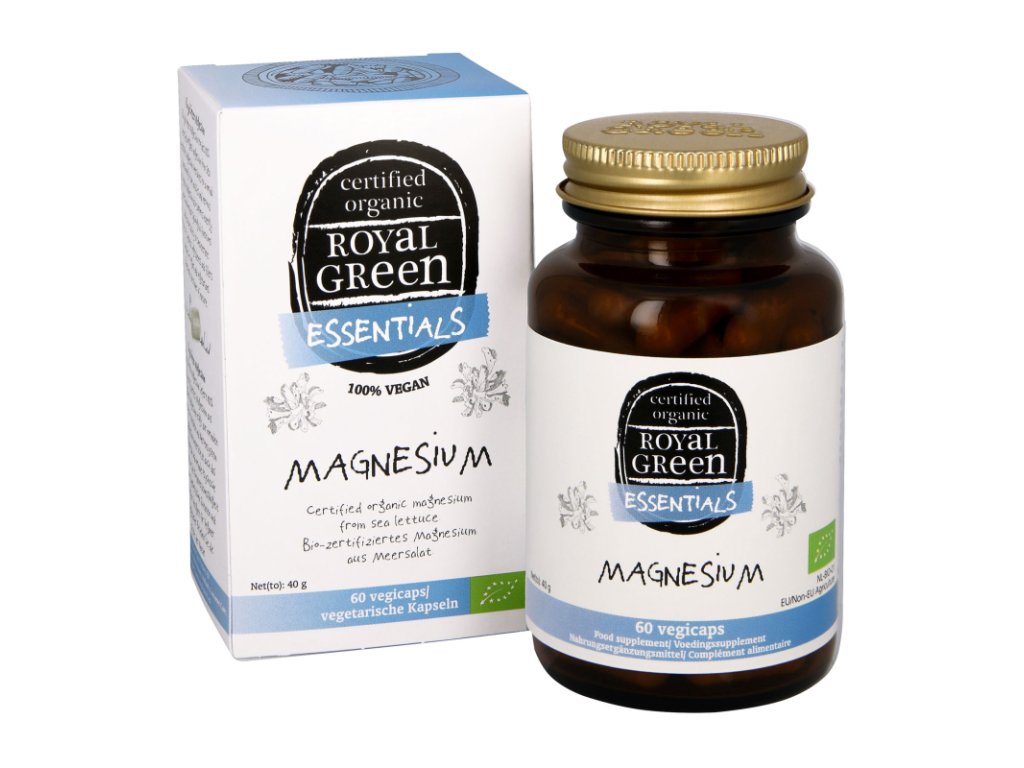 Royal Green Bio Hořčík je první produkt na světě s Bio certifikovaným hořčíkem, vitaminem D a ashwagandhou (vitánie snodárná). Hořčík a vitamin D přispívají ke správnému fungování svalů a nervového systému. Ashwagandha přispívá ke snížení míry únavy vyvolané dočasným stresem. Náš Bio certifikovaný hořčík pochází ze speciálního druhu mořského salátu. Nepoužíváme citrát hořečnatý, bisglycinát nebo oxid, které patří do skupiny uměle izolovaného hořčíku. Náš hořčík je skutečně přírodní, pro tělo dobře rozpoznatelný a díky tomu maximálně efektivní. Okuste sílu Matky přírody!